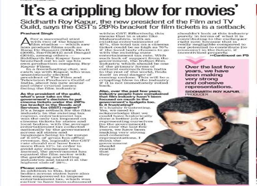 Siddharth Kapur: GST rate of 28 per cent 'huge setback' for film industry