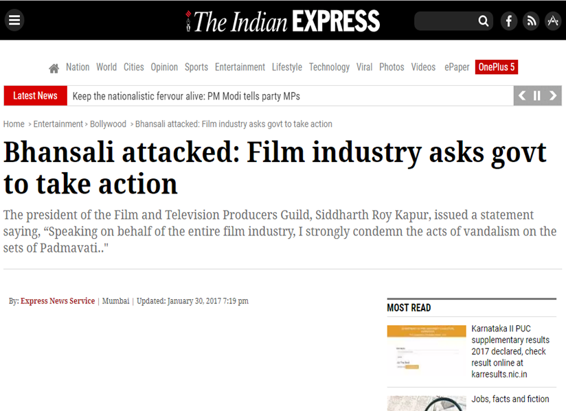 Guild and film industry in ‘One Voice’ protest attack on Sanjay Leela Bhansali